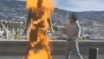 Statue of Cristiano Ronaldo is set on fire at the entrance to a museum in Portugal