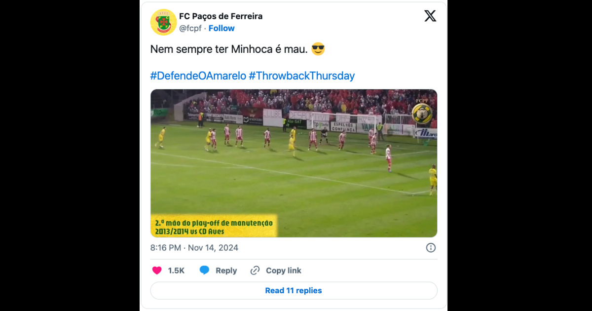 The publication was received with good humor and praise from fans, proving that, even off the pitch, Paços de Ferreira continues to score points.