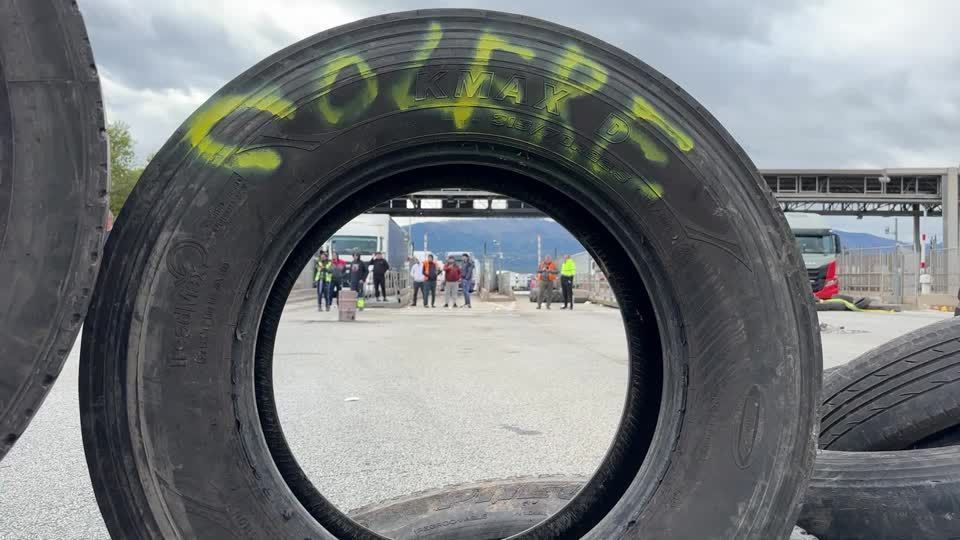 Angry farmers blocked the Le Boulou tollbooth on the French A49 motorway towards Perpignan and Montpellier with tires and their tractors, leaving a long queue of vehicles stuck, unable to enter France.