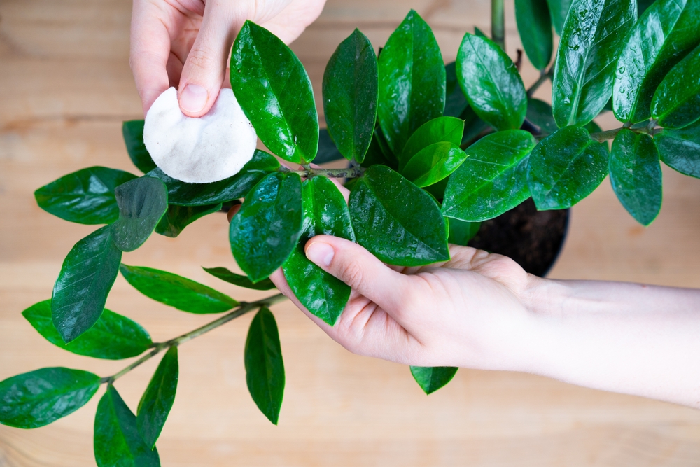 Cotton swab and water – the easiest way to wipe zamiokulk leaves
