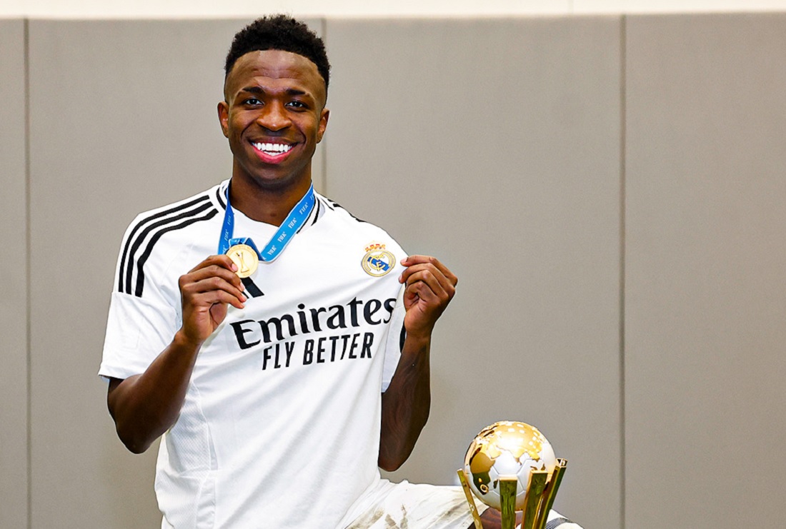 Vini Jr. celebrates Intercontinental Cup title Credit: Disclosure/Real Madrid