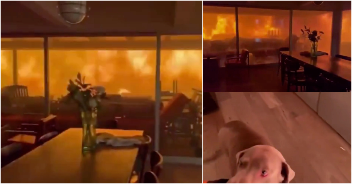 A stunning video has gone viral on social media, showing two men and a dog trapped in a house surrounded by fire in Pacific Palisades, an upscale area of Los Angeles.