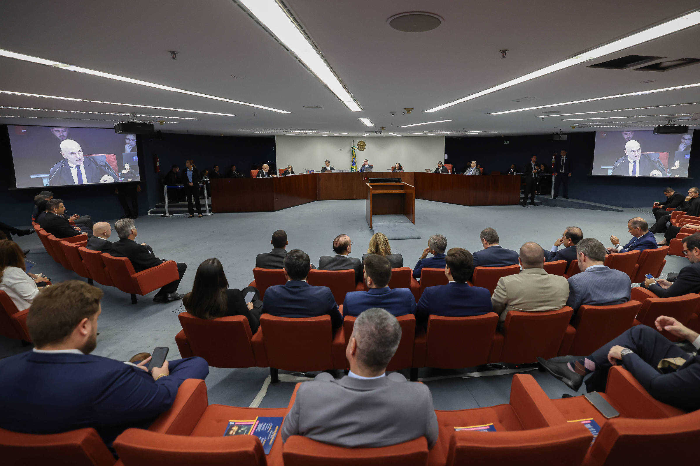 As in the session that made Jair Bolsonaro and seven other defendants in March, the minister broadcast a video with images of the depredation of public buildings and violence in the Praça dos Três Powers on January 8.