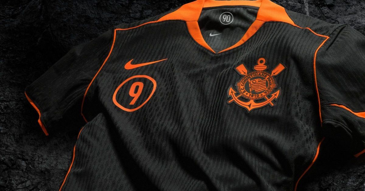 Inspired by the “Total 90” collection, launched by Nike in the 2000s, the model is predominantly black and brings orange details on the sporting supplier logo, the club’s shield and also on the collar and sleeves.