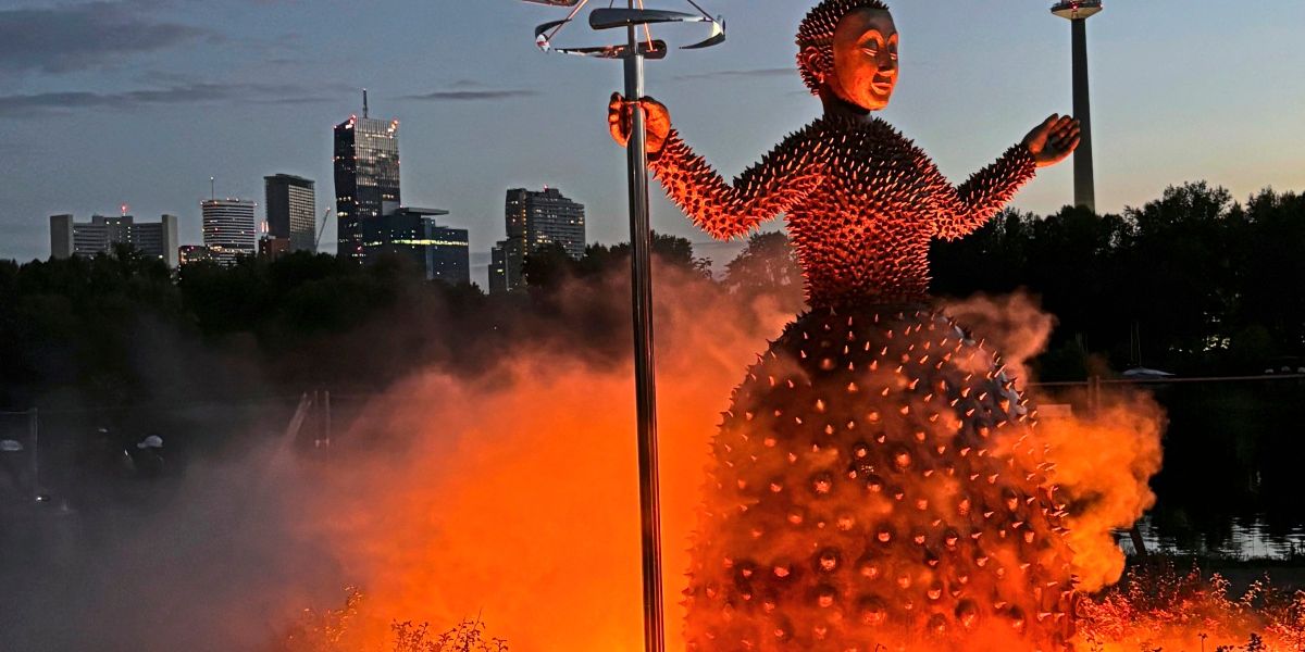 “Be careful, be attentive, take care of the rivers, on the streams, on nature, the environment, the trees and shrubs, the fish, the insects and butterflies!” Since time immemorial and guarding fabulous mythical creatures, naiades, Nereiden, elves, gods and goddesses watercourses, rivulets, fountains and oases. A “water watcher” has recently been added to the myths of the past. At the gestures of the Old Danube, she stands, a wind chime in the right, mysterious, mysteriously revolved by tender water fountains, sometimes mutating to dense fog -swaths, to watch the eye upstream, to observe heaven and earth and to protect the Danubeetropolis from unbill. As a direct descendant of the river god Danubius and his trusted Vindobona, which in the shadow of the Albertina in the heart of Vienna on a monumental, supported by Atlanten Musselbrunnen, the water guard personally designed by André Heller is now on duty; As a patron saint of the elixir of life, water.