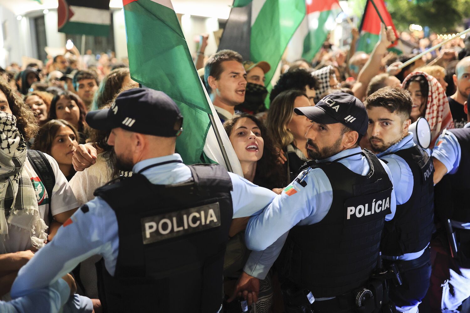 More than a thousand protesters were present on Thursday in a protest in Lisbon, which began in front of the embassy of Israel, to demand the release of the Portuguese citizens detained by Israel. Protesters asked sanction Israel and resignation of the current mayor of Lisbon, Carlos Coins.