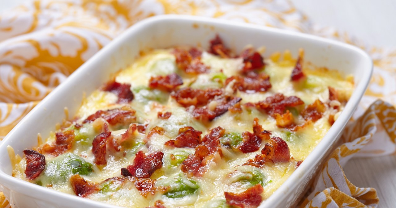 This dish is an ideal example that Brussels sprouts can be not only healthy, but also very tasty. The casserole combines the delicacy of vegetables with intense bacon and the creamy cheese consistency. It works as an independent lunch, dinner or warm meat appetizer.
