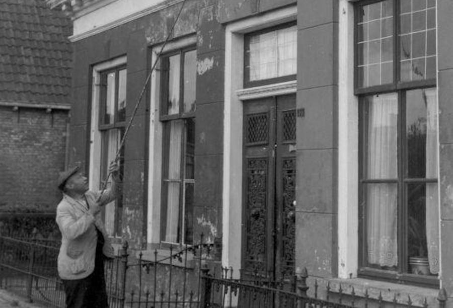 A “human alarm clock” in 1947, in the Netherlands