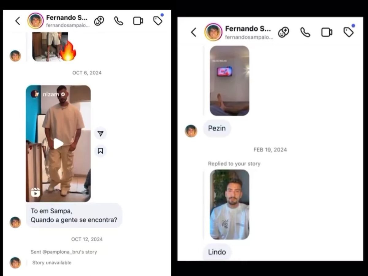 In one of the messages, Fernando wrote: “Good genetics is another thing… I was applauding this fibered arm”. At least in the prints released, Nizam did not respond, just liked the messages. In an image in which Nizam showed his feet, the actor also praised them. The team even used the song “Obsessed”, by Mariah Carey, as the soundtrack when displaying the prints.