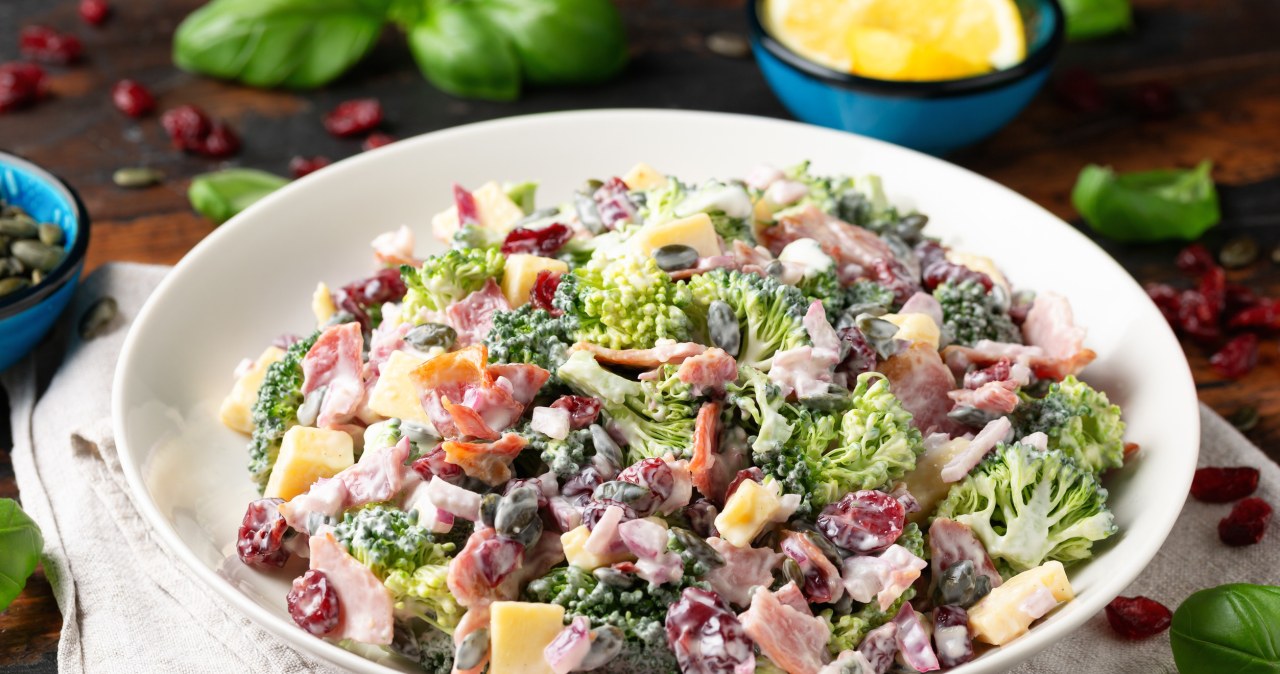 Salad with broccoli and garlic sauce it’s a great option for family gatherings, parties with friends, and even for a quick meal for lunch or dinner. Perfectly cooked broccoli goes perfectly with crunchy pumpkin seeds, salty bacon and a distinctive, creamy garlic dressing. Moreover, such a dish provides a lot of fiber, vitamins and minerals. If you want it to be more dietary, you can use lean chicken ham instead of bacon, it will also taste delicious.