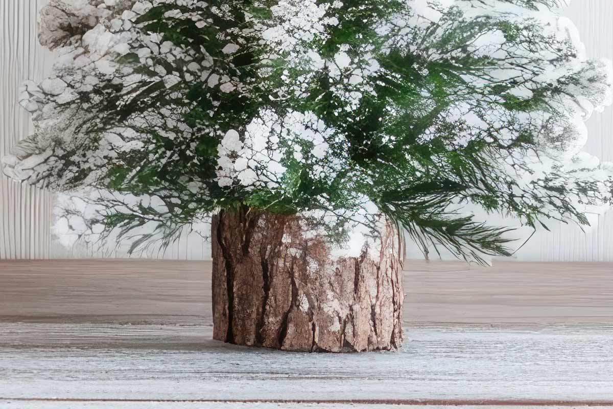 Visually, the effect is extraordinary. The contrast between the green of the fir and the bright brown of the wood gives a warm and sophisticated palette. If you add warm lights and a few sprigs of pine around the base, the mountain chalet effect is immediate.
