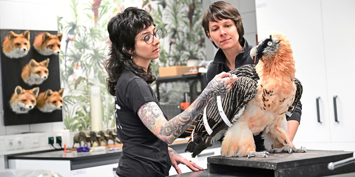 In the belly of the Natural History Museum (NHM) Vienna, where the flow of visitors stops, a different order of things begins. One that is designed to last longer than a lifetime. Feathers, needles and glass eyes lie on work tables. Bacon beetles are crawling in a box. Gal Shalev reaches in with his bare hands and digs through the insects. “Cleaning out bacon beetles” is apprentice work. The larvae gnaw every scrap of the bones until they are clean. “The beetles are like our pets,” says Shalev’s colleague Melina Haring. Shalev takes out the white bones, then they are cooked, processed, perhaps assembled into a skeleton. Fear or disgust have no place here.