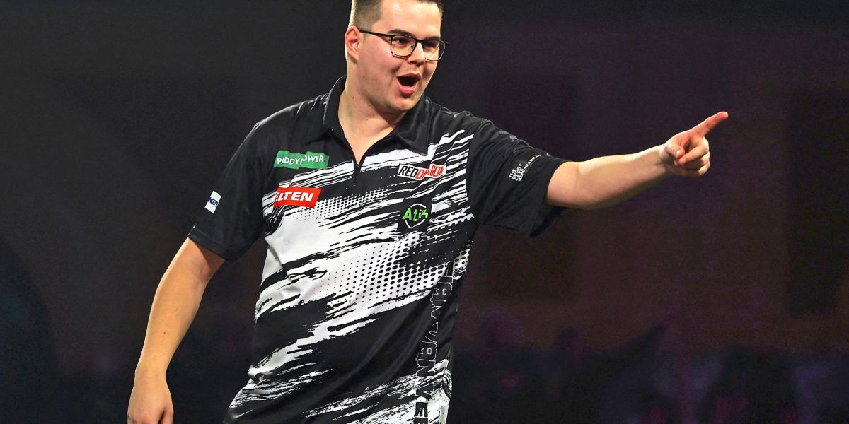 London – With a spectacular performance, Dutchman Gian Van Veen made it to the final of the Darts World Cup for the first time. The 23-year-old beat 55-year-old Gary Anderson from Scotland 6-3 at Alexandra Palace in London on Friday evening. In the final on Saturday (9 p.m./live on Sport1, DAZN), Van Veen will face defending champion Luke Littler, who had previously defeated Ryan Searle 6-1.
