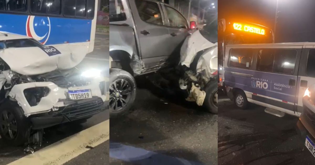 In images taken by people who were at the scene, it is possible to see the bus between the city hall car, which had its front raised after the collision, and the rear of the completely destroyed van.