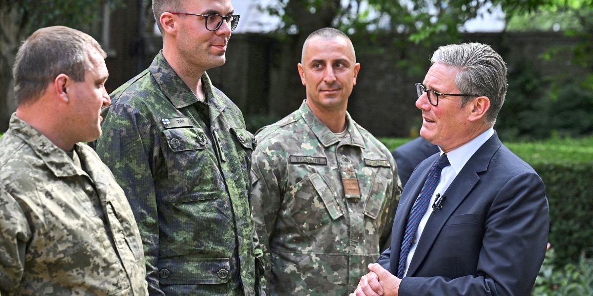 British Prime Minister Keir Starmer meets troops involved in Operation Interflex, during a meeting with Ukrainian President Volodymyr Zelenskiy (not pictured) at Downing Street in London, Britain, June 23, 2025. REUTERS/Jaimi Joy/Pool
