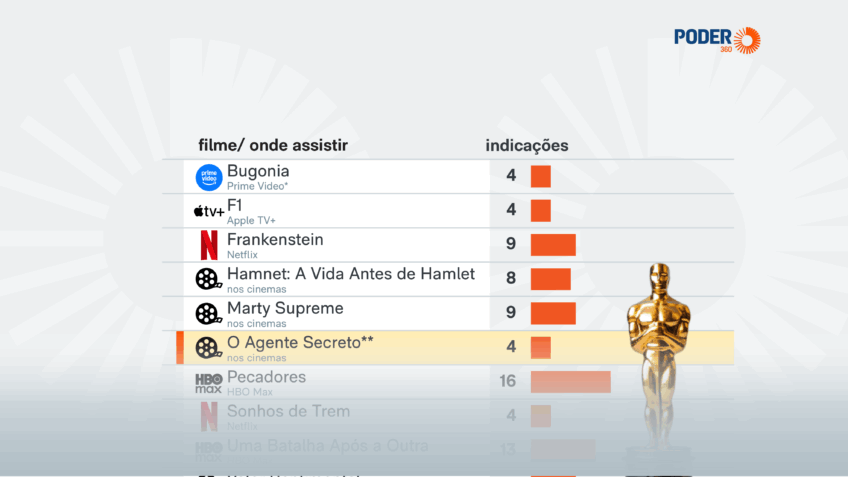 Of the 10 productions nominated for best film, 6 are available on streaming platforms and 4 are still showing in cinemas, including “The Secret Agent”.
