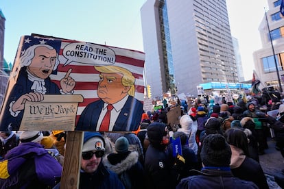 The speeches began this Friday at 2:00 p.m. (local time, seven more in mainland Spain). By then, Sarah Keüler, who had driven three hours to be here, had already been out in the sun for a while, trying to combat the 14 degrees below zero. “We’ve had enough. The people of Minnesota don’t run away, when danger lurks, we come together more. It’s been a long time since I felt so proud of who I am,” she explained. A little further away, Bill, who did not want to reveal his last name, apologized for becoming inflamed when talking about what is happening. “I feel ashamed. It’s a fucking shame, I never believed that we would reach this extreme in this country, which I no longer recognize,” he said.