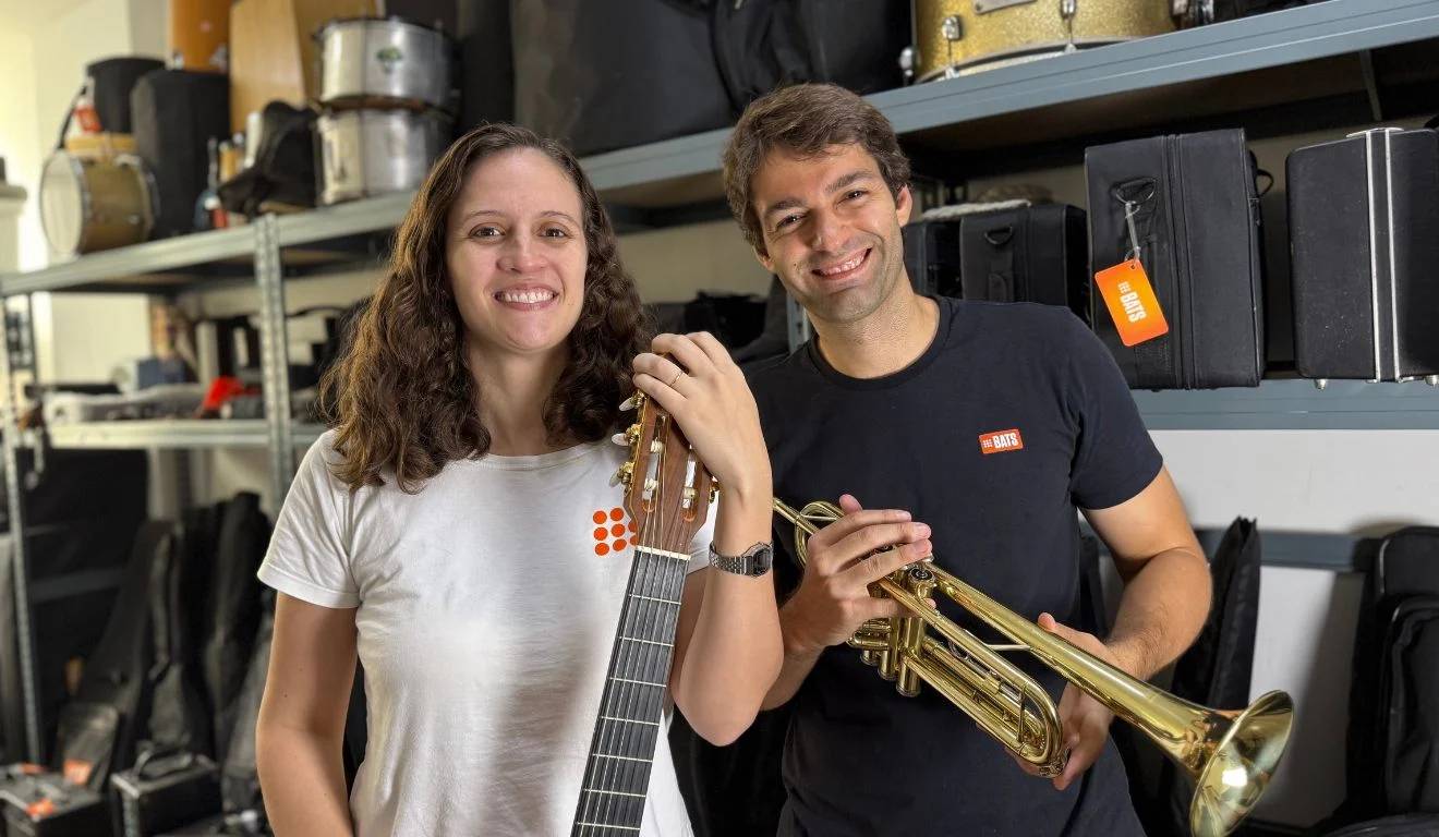 The idea for BATS was born at home, literally. Music lovers, Luíza and Leonardo found themselves surrounded by stationary instruments, little time to play and a recurring question: why is it so difficult to access music in Brazil? After spending time in Malaysia, where Luíza studied an MBA and Leonardo worked at an e-commerce startup, the couple decided to make extra income by renting their own instruments to friends.
