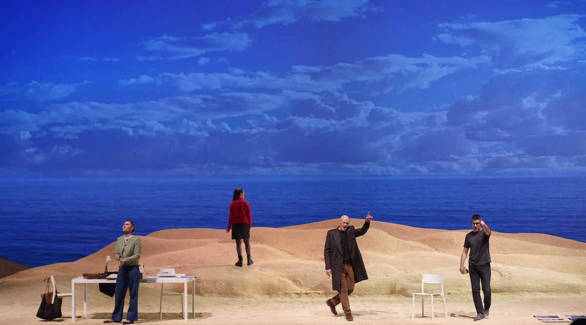 Rigola also signs the stage direction, transferred to the present day and set on a sunny beach, with scenery and costumes by Patricia Albizu, video by Álvaro Luna and lighting by Carlos Marquerie, which evolves towards increasingly gray, reddish and dark tones as the action progresses.