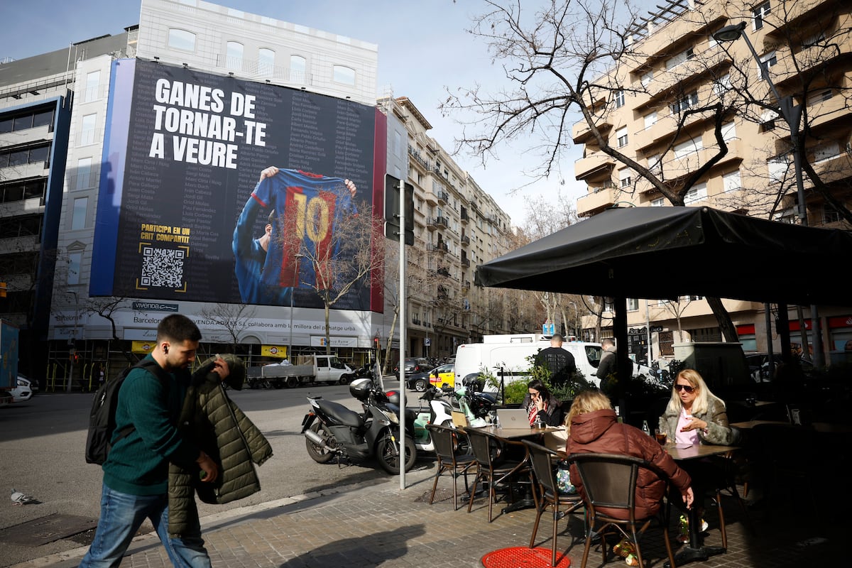 which will be held next March 15, does not slow down. This Wednesday morning, the pre-candidate and leader of the ‘Moviment 42’, Marc Ciria, displayed a large canvas with the image of Leo Messi in the heart of Barcelona, ​​on a building on the corner of Travessera de Gràcia and Aribau. A banner with the legendary photograph of the Argentine holding and showing his shirt to the stands of the Santiago Bernabéu with his number 10. Next to it, a message in Catalan: “Want to see you again.” , deployed at the end of 2020 near the Real Madrid stadium.