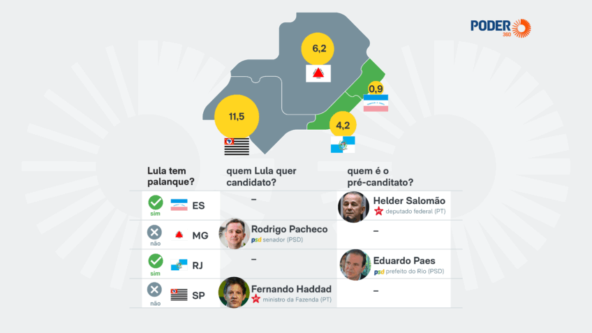 The president (PT) has had difficulty setting up platforms in the Southeast for the 2026 elections. The region has the largest electoral college in the country, with 65,493,324 voters eligible to vote, according to the (Superior Electoral Court).