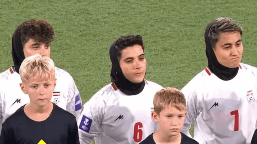 As the national anthem of Iran in a match against South Korea, played in Queensland (Australia), on March 2 — a gesture interpreted as a political protest. On Sunday (8 March), Iran’s women’s team was eliminated from the Asian Cup after losing 2-0 to the Philippines.