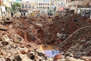 Crater caused by an Israeli rocket in the Lebanese town of Nabi Shit, birthplace of Hezbollah. / NIDAL SOLH / AFP