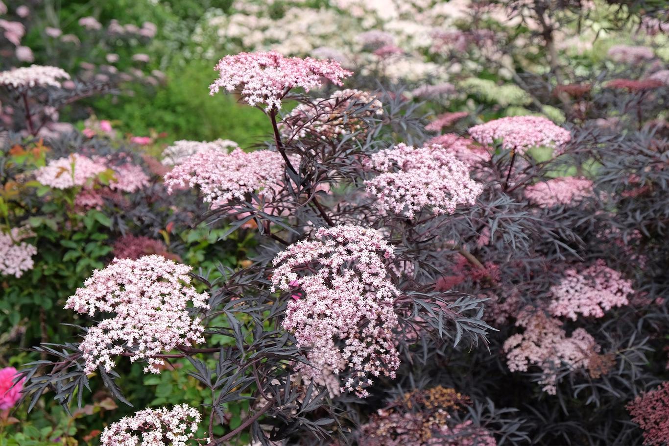 Most people think of medicated syrups or the countryside when they hear the word black. But with modern bred varieties it is a little different. “Some elderberry cultivars have deeply cut leaves and a dark, purple to almost black color. Their shape can really resemble Japanese maples. Japanese maples are usually colored deep red, or they have darker leaves that can be dark burgundy or purple.” says Ludmila.