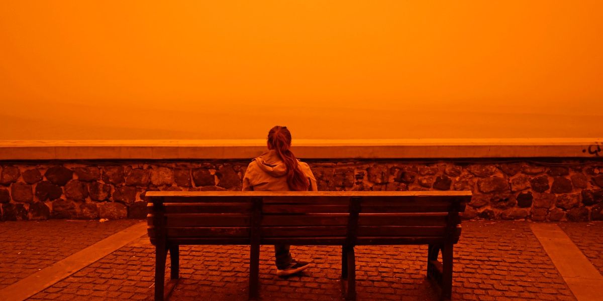 Storms around the Aegean Sea, Saharan dust turns the sky orange-red