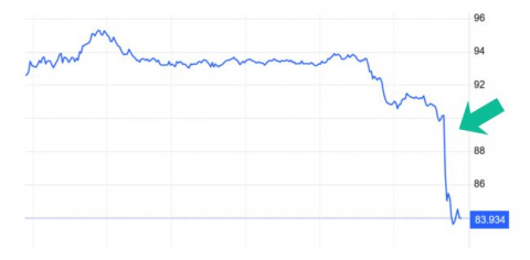 A bit of the same thing happens with Brent barrels. The price still remains above what was seen before USA and Israel began their illegal attack on Iran, but it is collapsing at an intraday rate rarely seen.