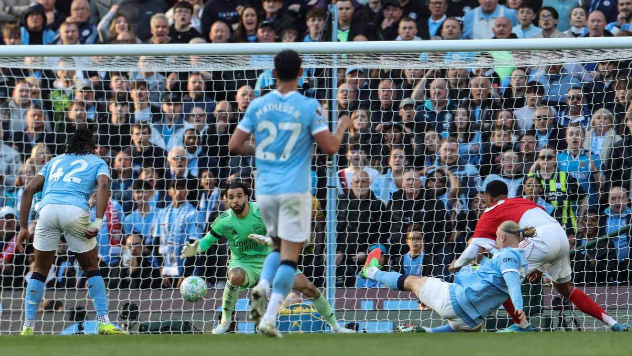 Just as the Arsenal fans began to make their voices heard, they were silenced in the 64th minute. Nico O’Reilly crossed the ball into the box and Haaland sent his shot into Raya’s corner.