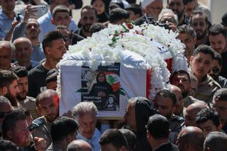Transfer of the coffin with the remains of journalist Amal Khalil in Baisariyah, southern Lebanon, this Thursday. / POOR HAMZEH / EFE