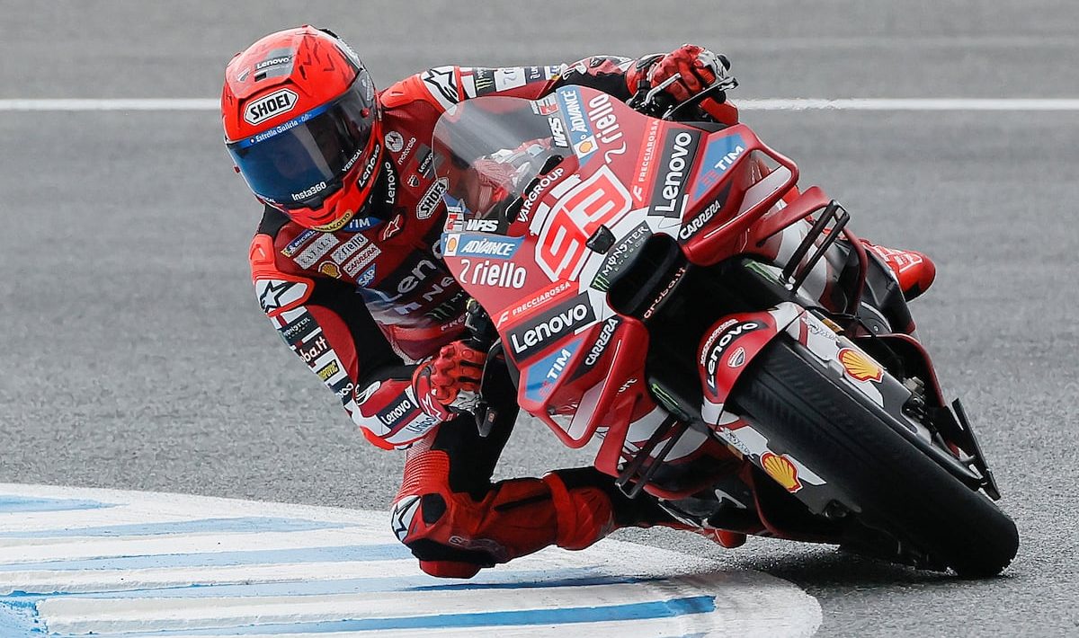 Marc Márquez said on Friday that he had not danced on the bike since last year’s Japanese GP. “Have I forgotten, perhaps?” he joked. This Saturday it became clear that no. In front of the dedicated fans who endured the morning downpour in Jerez, the Spanish Ducati rider danced again to take a creditable pole position and put himself within reach of his 100th World Cup victory. Taking advantage of the wet asphalt and the difficult conditions that he has always known how to take advantage of better than anyone, the world champion achieved first position on the grid, taking the colors of a large part of the grid with a 1.48.087. Only the Frenchman Johann Zarco, notorious second on the Honda LCR, was able to keep up with him, the rest of the drivers more than a second behind the leader of the grid.