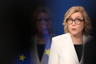 Henna Virkkunen, Vice President of Technological Sovereignty of the European Commission, announces a new app to verify the age of internet users. / Nicolas Tucat / AFP