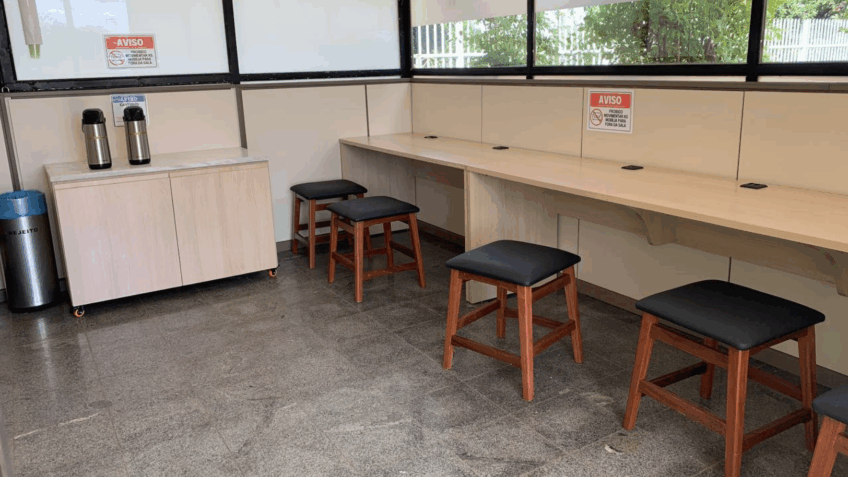 Room located in the external area of the official residence of the President of the Republic has 10 benches, benches with sockets and air conditioning; …