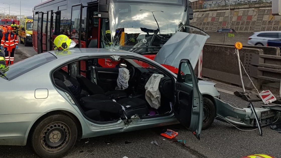 Due to the collision between a bus and a car, there is only one lane on D2 at the Patrónka exit in the direction of …